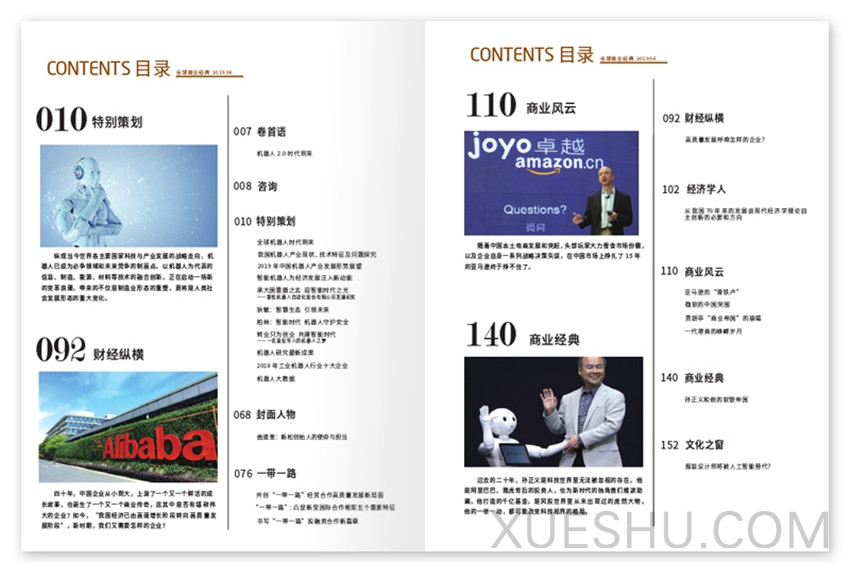 《全球商业经典》杂志分为天下、封面、世间、经典、人文、趋势、生活等七大版块,天下汇聚全球资讯与精英观点,封面提供战略与趋势的深度报道,世间通过审视个人命运折射大历史,经典则是对商业模式与典型案例的全景剖析,人文追寻商业原点的价值基因,趋势描画技术与商业的未来,生活倡导美及与优雅有关的一切。